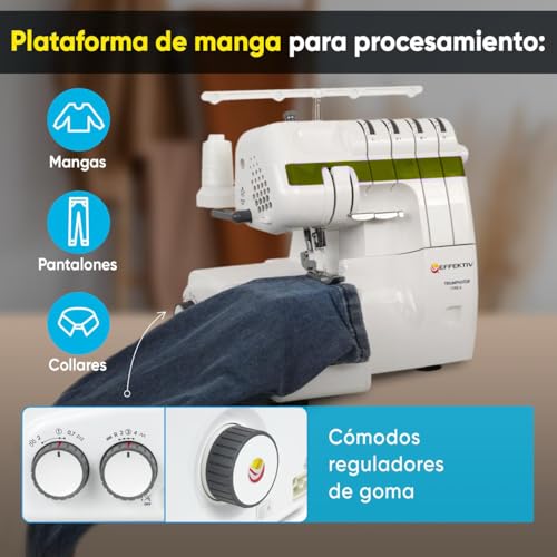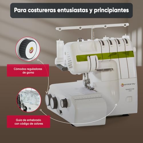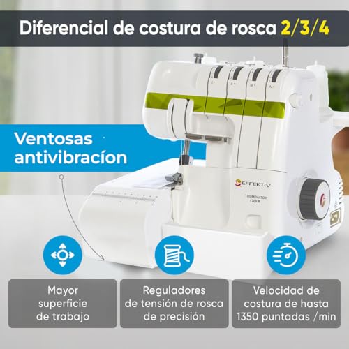 Que no te asuste esta marca y en especial este modelo el Effektiv Triumphator 1800Х. Puede no dar la misma confianza que nuestra selección de overlocks Singer, pero para empezar diremos a su favor que la calidad es sobresaliente. Antes de esto, vamos a ver sus características, aunque ya os decimos que es bastante completa.